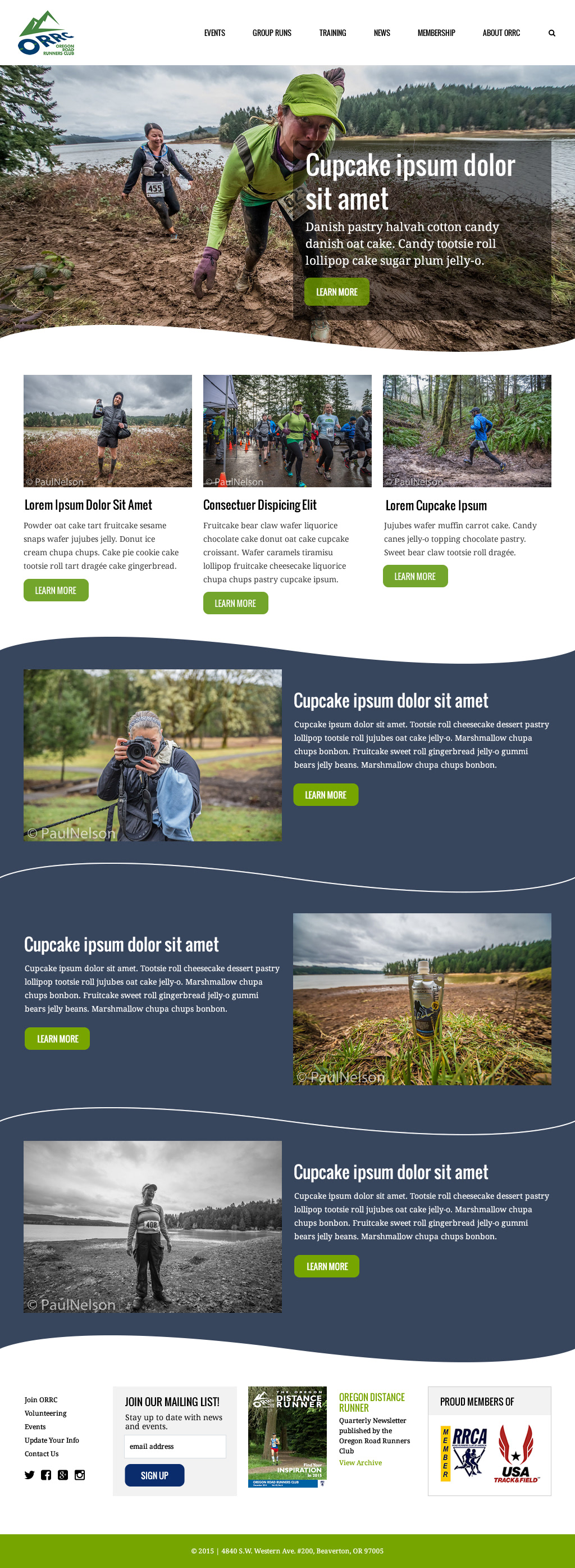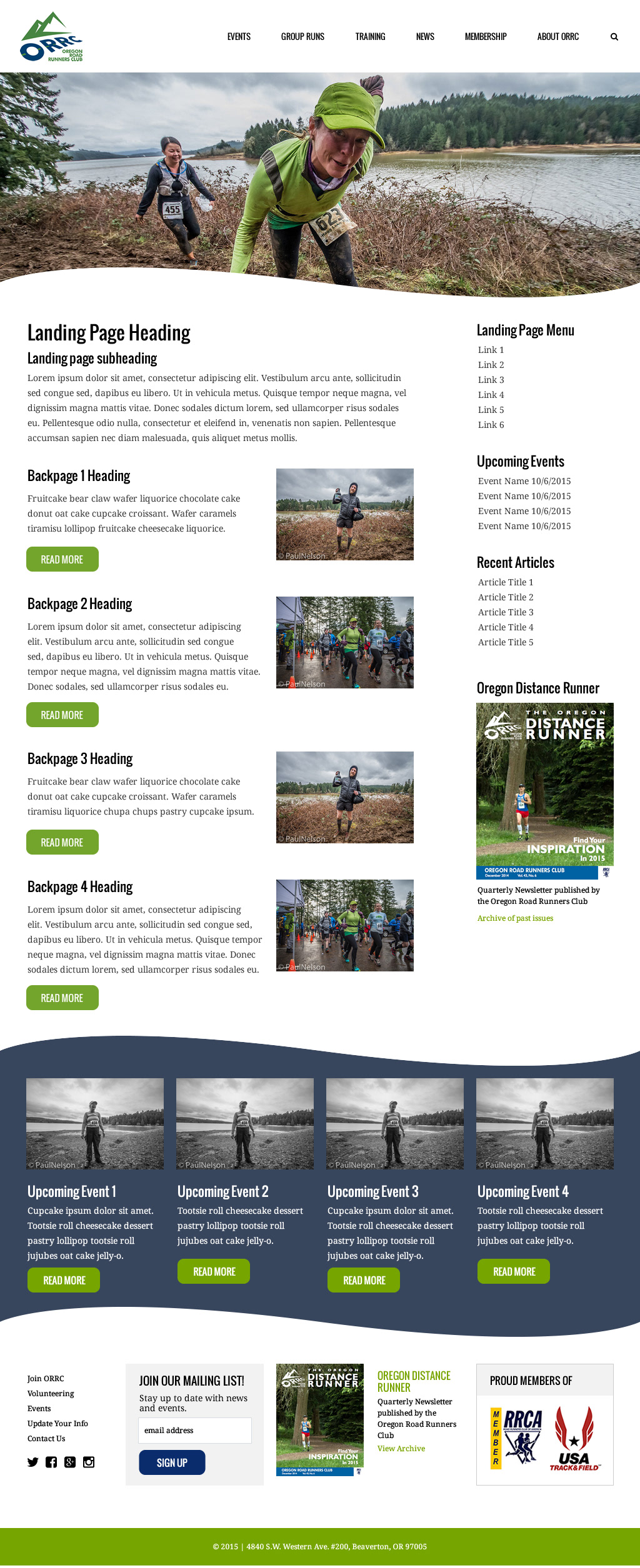A website redesign for the Oregon Road Runner's Club. Full site live at http://orrc.net/