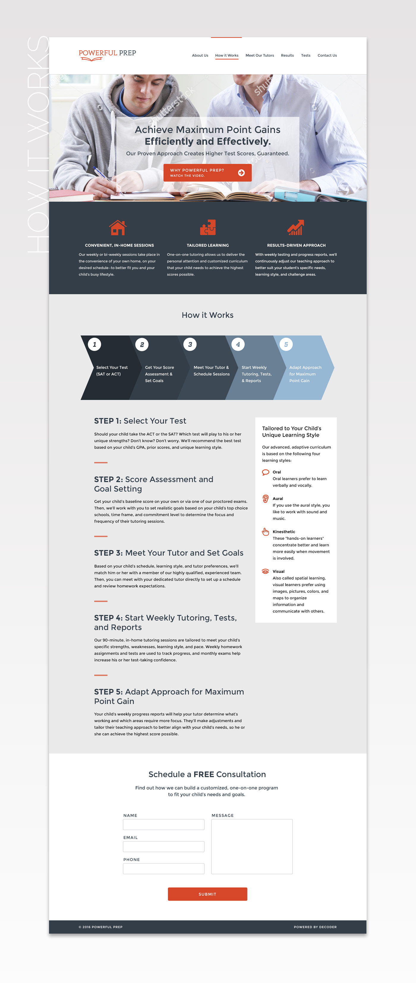 A website redesign for Powerful Prep. This project was done as contract work through Decoder Digital in Portland, OR.